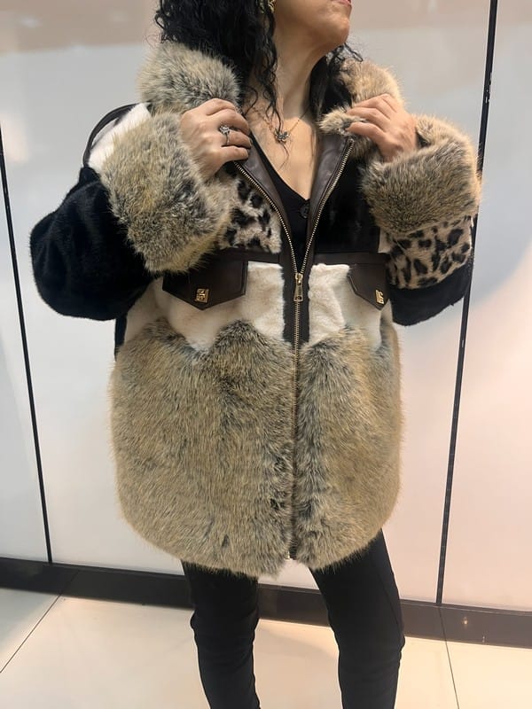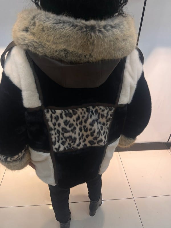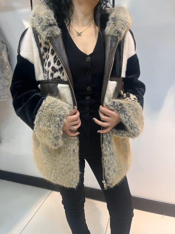 Kapüşonlu kürk detaylı desenli kadın ceket, özgün tasarımı ve sıcak tutan yapısıyla kış kombinlerinin dikkat çeken parçasıdır.